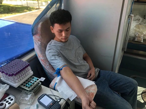 活动现场,同学们在工作人员引导下,依次进行信息登记、血液检验、静脉采血,井然有序。在献血区,他们纷纷挽起衣袖,用自己的青春热血书写着“乐于奉献”的美丽诗篇。在场不少同学是第一次献血,难免有些紧张,但他们还是勇敢地伸出胳膊,脸上写满了兴奋和开心。