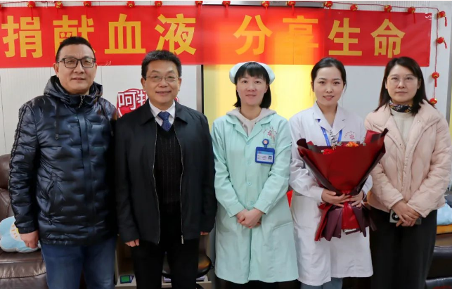 李育新主任向六安市中心血站先进代表夏露赠送了鲜花,并与之亲切交谈,详细了解市区献血点无偿献血情况,感谢她们在平凡岗位上做出的不平凡业绩,勉励大家继续保持昂扬向上的作风,以全新的面貌、饱满的精神继续投入到无偿献血工作中。