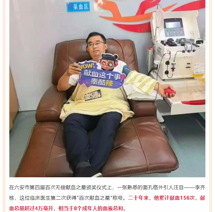 “百次献血之星”李齐栋:医者仁心二十载 不忘初心守大爱
