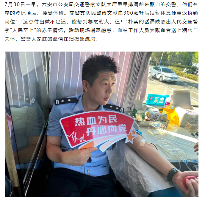 六安警营涌动热血真情 民警辅警挽袖为生命接力