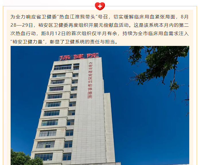 【热血江淮我带头】第五站:裕安区卫健系统半月两献热血 妇幼保健院半年双行显担当