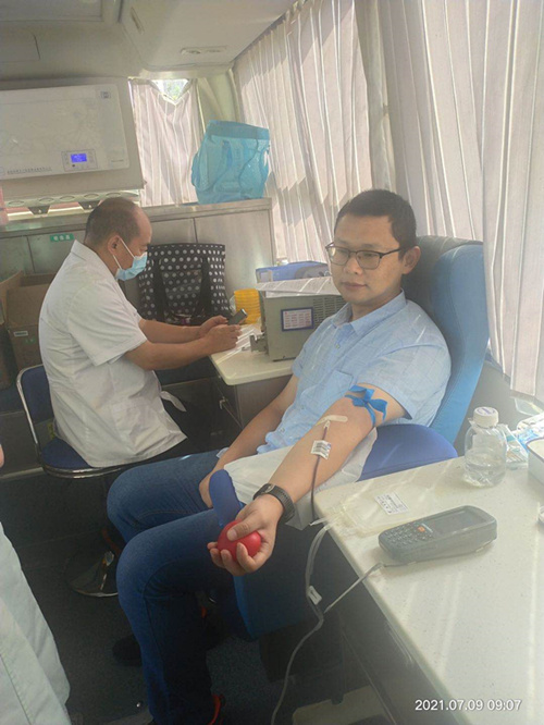 在献血现场,干部职工们有序地进行登记登记信息、体检、验血,一切井有序,有条不紊。挽起袖子、伸出手臂,一袋袋新鲜的血液凝聚起了一颗颗爱心。