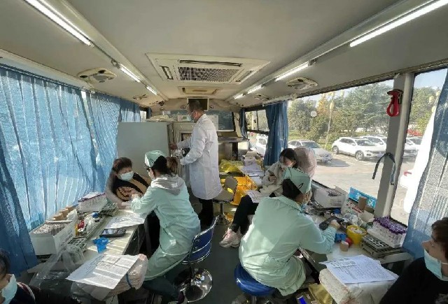 早上8点献血车一到大院