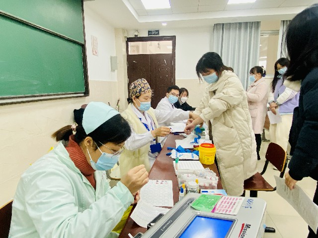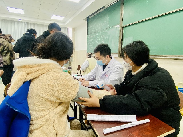 12月26日下午,记者在现场看到,学校学生会和志愿者们积极筹备,配合医护人员开展无偿献血前的各项检测工作。他们有的做引导,告诉同学们如何填献血登记表;有的给大家分发口罩,管理现场秩序;有的耐心解答同学们的问题并缓解同学们的紧张情绪。各个环节和流程有条不紊,为献血前期工作做好充分准备。