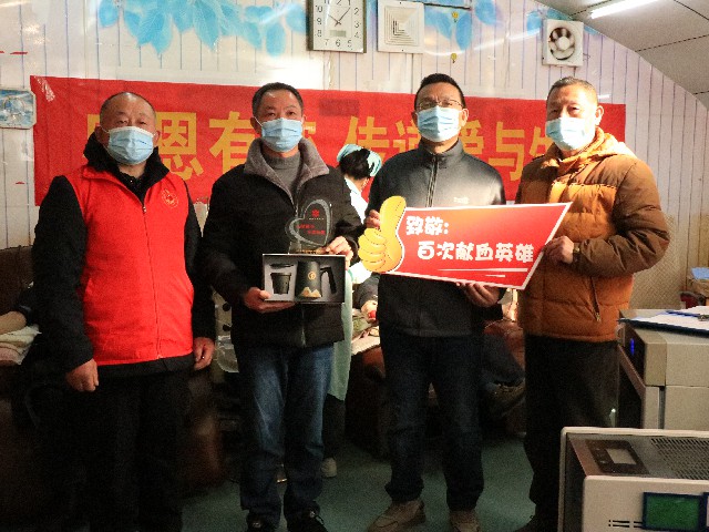 12月29日,六安市红十字中心血站以“感恩有您,传递爱与生命”为主题,在百大献血屋为2021年献血达24次以及累计献血满100次以上的9位献血者举行感谢仪式。