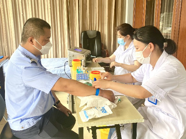 献血活动中,参与无偿献血的民警、辅警热情高涨,按照医生的要求认真填表,听取医生讲解献血过程中应该注意的事项,并按顺序配合医务人员逐一完成化验、体检、抽血等献血流程。现场秩序井然有条不紊,受到了血站医护人员的一致赞誉。