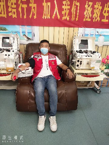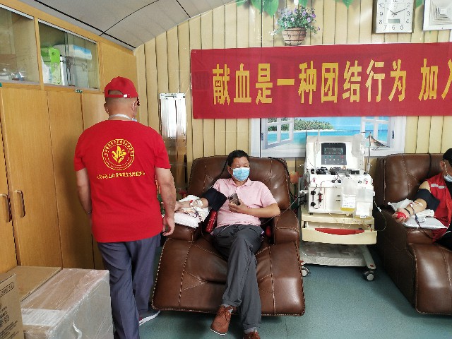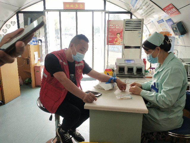 刚在百大献血屋献完血小板的映山红志愿服务队副队长张勇,这已经是他第八十次参加无偿献血了,献完休息片刻后立马又投入到志愿服务中,向每一位前来参加无偿献血的爱心市民送上节日祝福,引导前来献血的市民填表、解答献血者疑问。他说,当前新冠疫情防控形势仍然严峻,也给我市无偿献血工作带来了巨大的挑战,需要广大市民朋友们伸出手臂,捐献热血。他说:”今天我们已经好几位队员都成功捐献了机采血小板,虽然还有的没有到期,但他们仍然满腔热情期望积极参加到节日的志愿服务工作中来,为全市人民的健康做出一份贡献。”