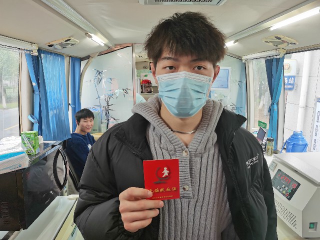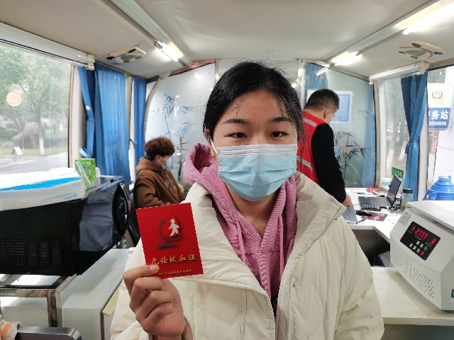 在献血现场,咨询、填表、测量血压、化验、采血休息,所有流程都在医护人员和大学生志愿者的指引下井然有序地进行。献血志愿者手握着鲜红的《无偿献血证》,脸上洋溢着快乐的笑容。