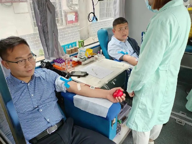 活动现场,大家有序的填表,量血压,抽血化验等,顺利通过检测后,有序前往献血车上挽起袖子,献出自己的一份爱心。“这是我第五次献血,没什么不舒服。无偿献血不仅是献出一份爱心,更是一名党员干部的责任和义务,我想尽自己的绵薄之力做一份对社会有益的事。”乡政府计生办主任袁亮说。