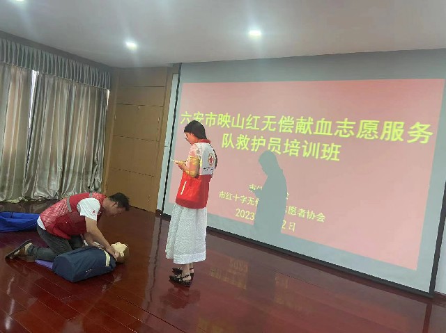 为进一步普及应急救护知识,提升队员应对突发事件和意外伤害事故的应急救援和自救互救能力,助力无偿献血志愿服务工作,六安市无偿献血志愿者协会邀请了市红十字会的两位培训教师给志愿者们开展了“救”在身边 热血同行救护员专项培训。