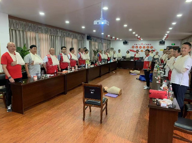 本次培训分为基础知识学习和实操培训。培训现场,老师们针对AED、心肺复苏、止血包扎操作方法、流程进行了生动、形象的演示讲解。大家认真听讲、积极互动,并在老师们的指导下通过人体仿真模型进行心肺复苏的实际操作,分组进行止血包扎、心肺复苏等实操练习。随后,大家在手机上完成理论考试。理论考试后,每个学员需独立完成止血包扎和心肺复苏整个急救过程演练才能通过实践考试。最终在大家的努力学习以及培训教师的耐心指导下,所有参训人员全部通过考核,获得红十字救护员证。