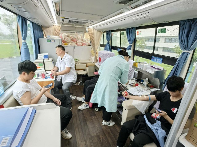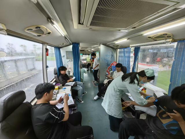 活动当天,志愿者们早早来到学院献血点进行场地布置,摆放宣传展板,引导同学按秩序排队献血;参与献血的同学在现场有序的进行扫码、填表、化验、献血,由于部分学生年龄未满十八周岁或一些特殊情况无法献血,而感到非常遗憾,同时也表达了对无偿献血的积极向往:“没想到没有达到献血条件,等下次献血车再来的时候,我一定要献一次血。”