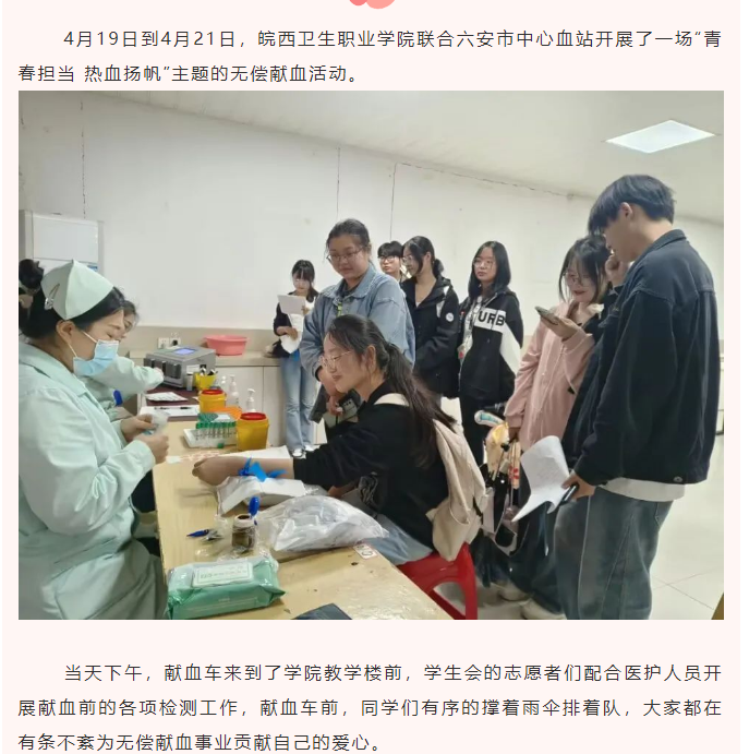 【无偿献血高校行】皖西卫生职业学院:青春担当 热血扬帆