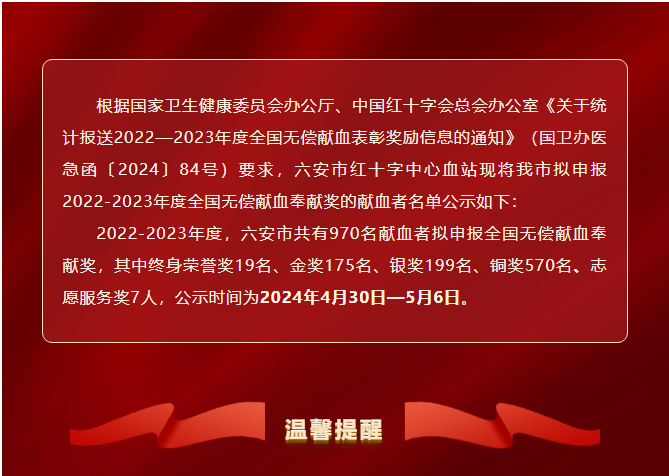 【重要通知】2022-2023年度无偿献血奉献奖拟申报名单公布,快来查收