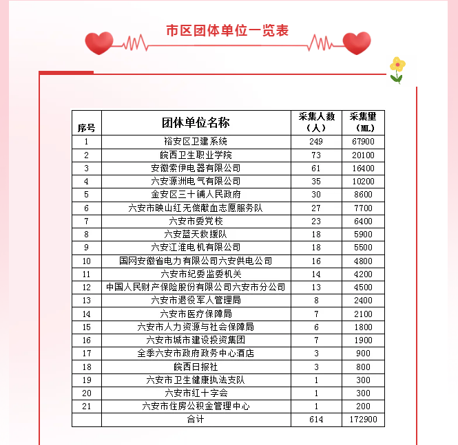 【爱心汇聚】六安市4月团体单位献血光荣榜