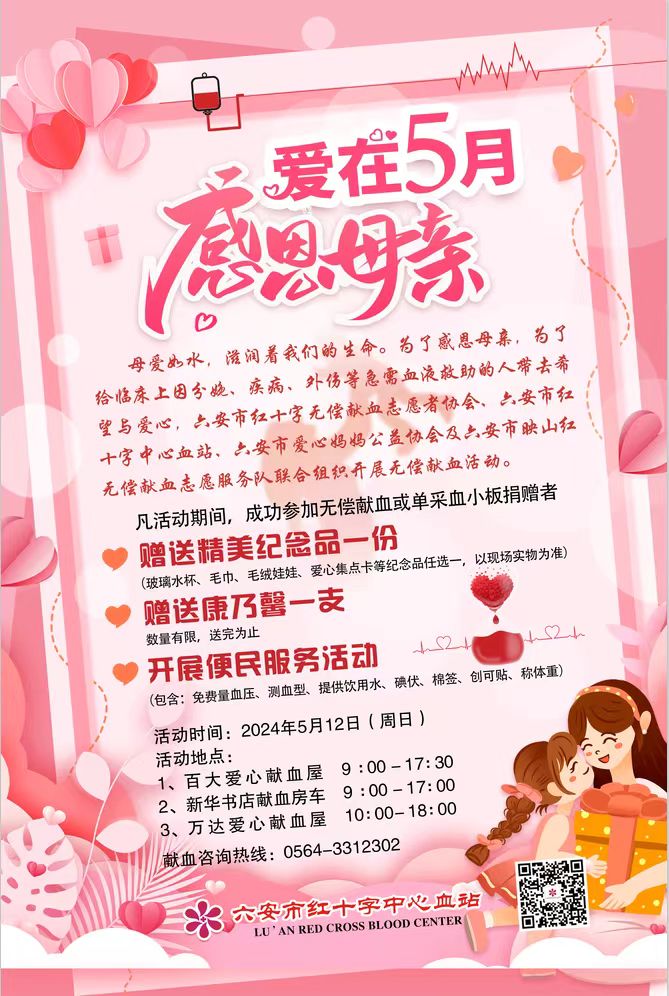 感恩母亲节,无偿献血有好礼