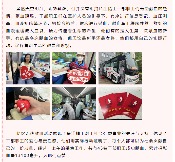 【无偿献血企业行】长江精工:涓涓热血汇聚生命长河