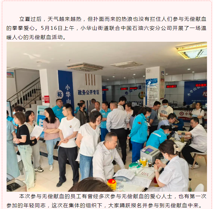 小华山街道联合中国石油六安分公司开展无偿献血活动