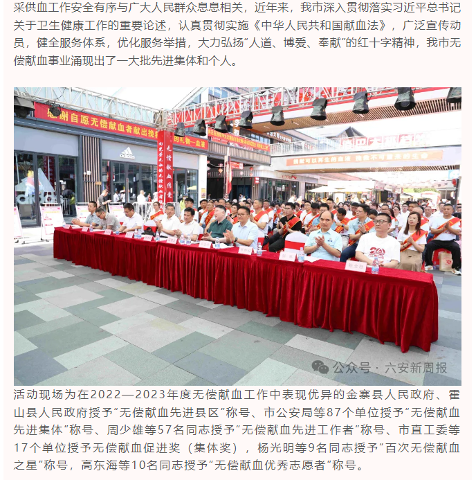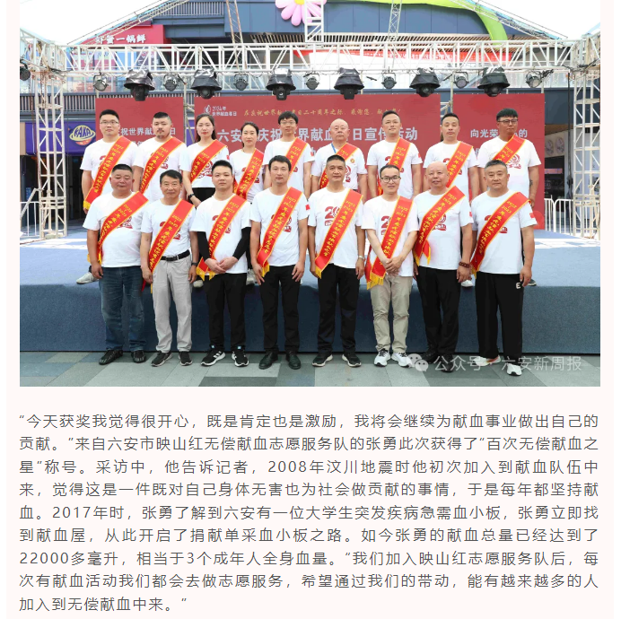 感谢您 献血者!六安市庆祝6.14世界献血者日宣传活动今天启动