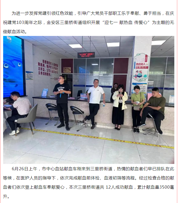 【6.14献血月】三里桥街道:用“热血红”渲染“党旗红”