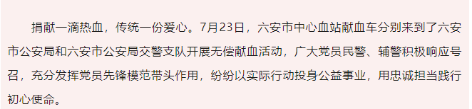 【红色七月,热血献礼】六安警方:热血铸警魂 奉献显担当