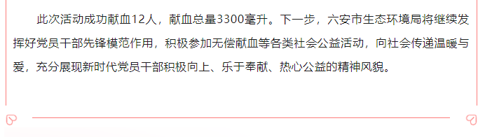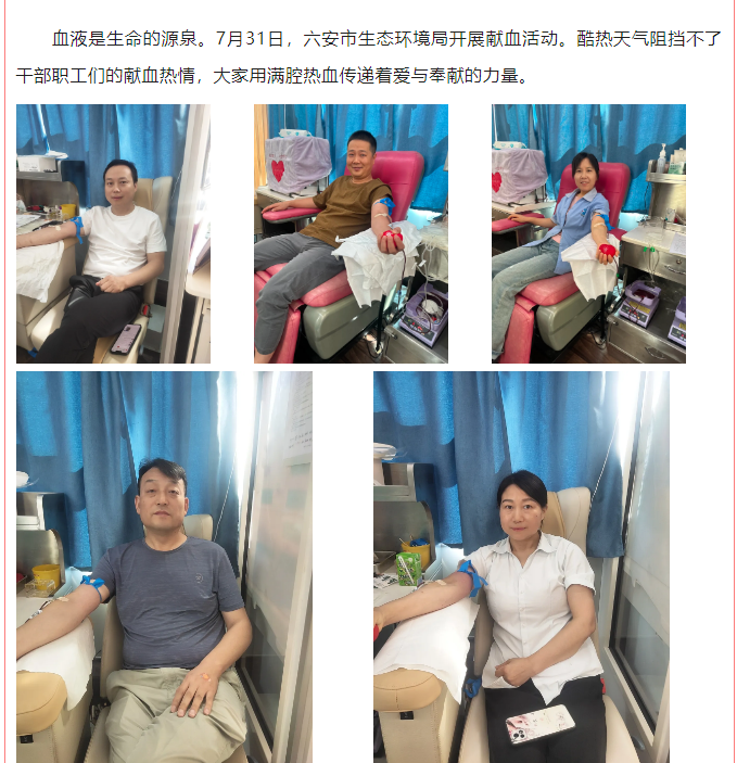 【红色七月,热血献礼】六安市生态环境局:涓涓热血 与爱同行