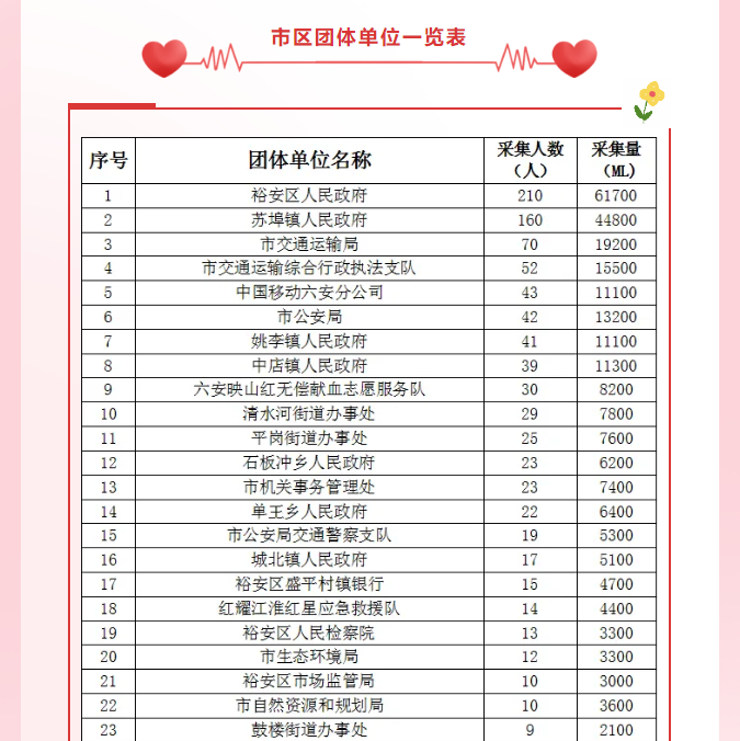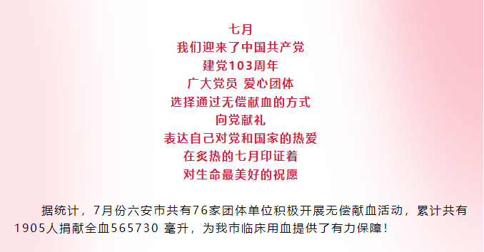 【爱心汇聚】六安市7月团体单位献血光荣榜