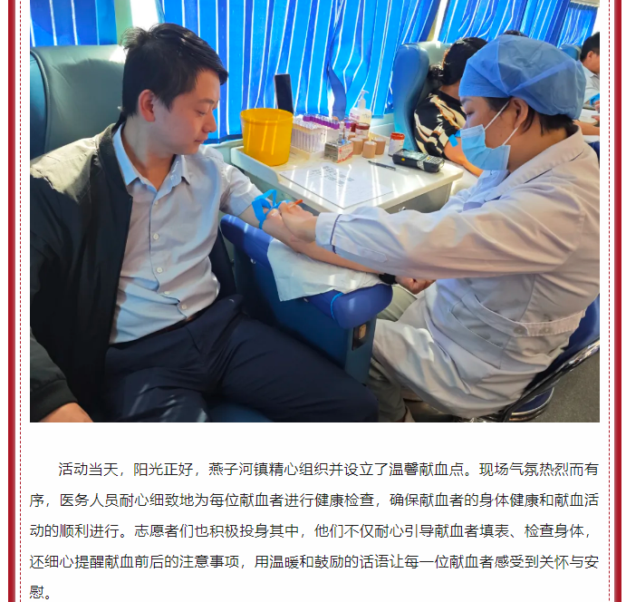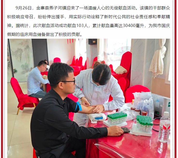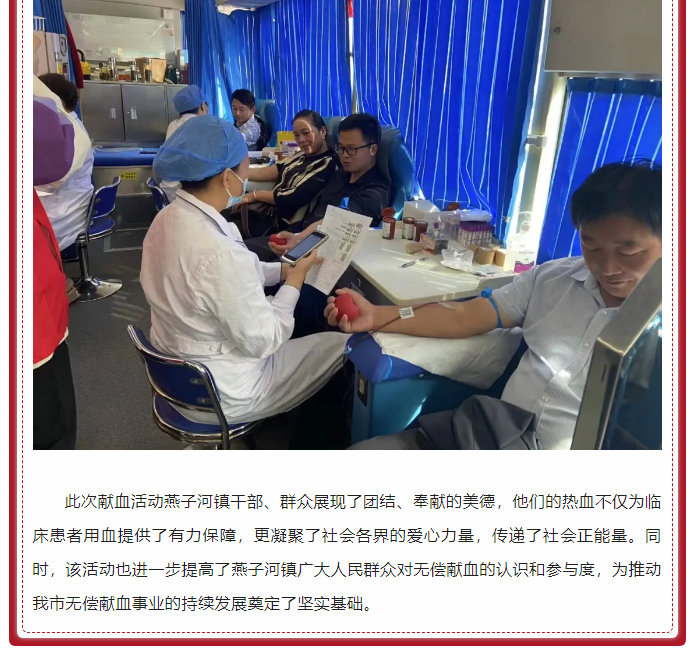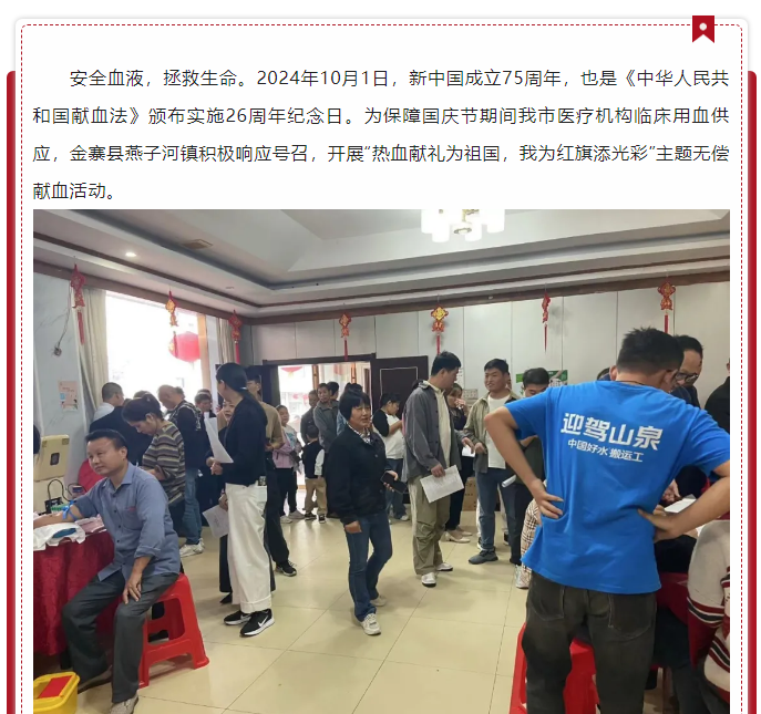 金寨县燕子河镇组织开展热血献礼为祖国,我为红旗添光彩——无偿献血活动
