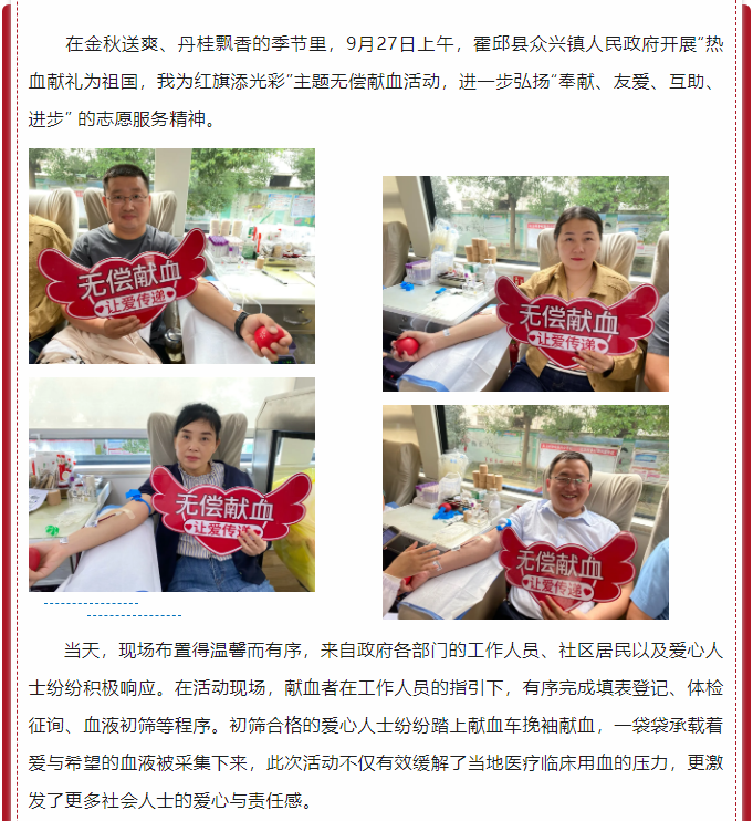 霍邱县众兴镇:热血传情 众人接力