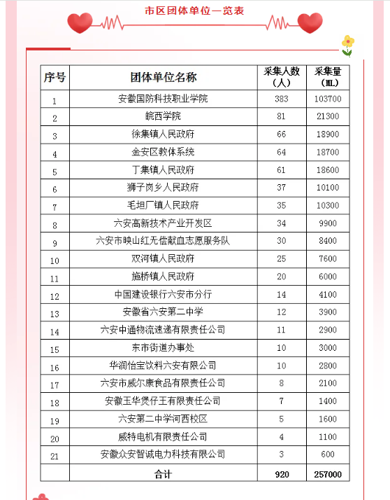 【爱心汇聚】六安市11月团体献血光荣榜