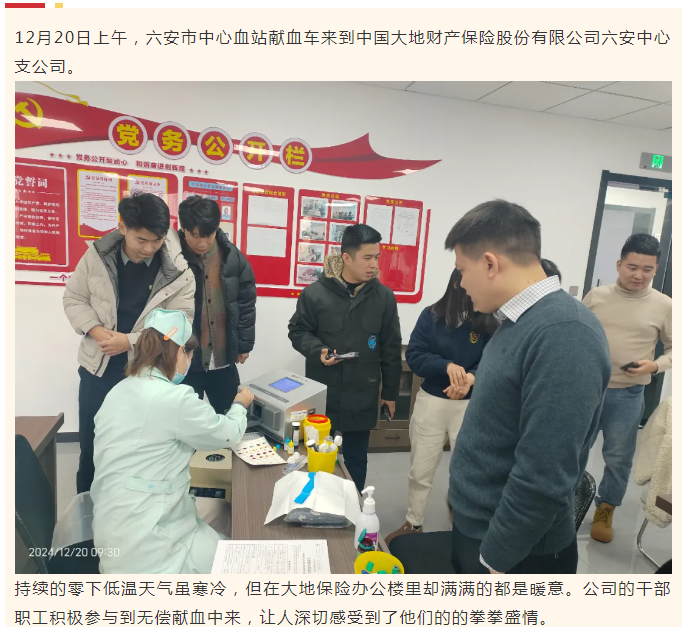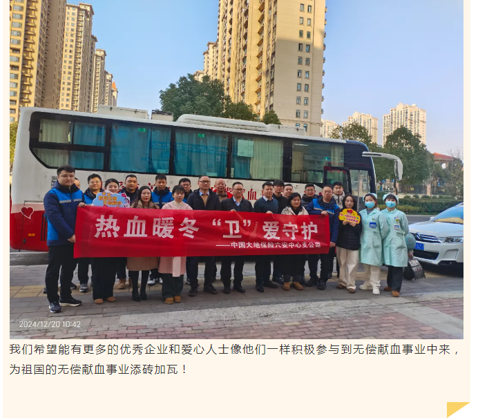 【无偿献血企业行】六安大地保险:热血暖冬天 “卫”爱守护