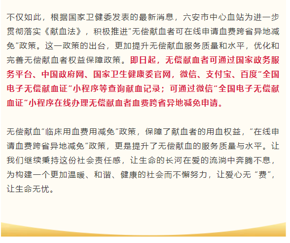 六安血费减免政策落地见效 双渠道服务+三免礼遇让爱心无忧