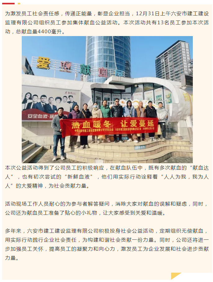 热血建工,让爱蔓延