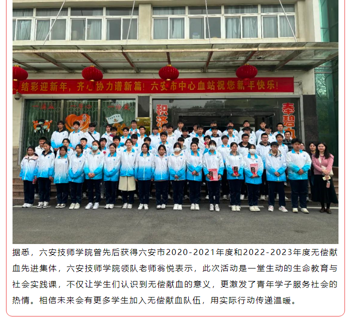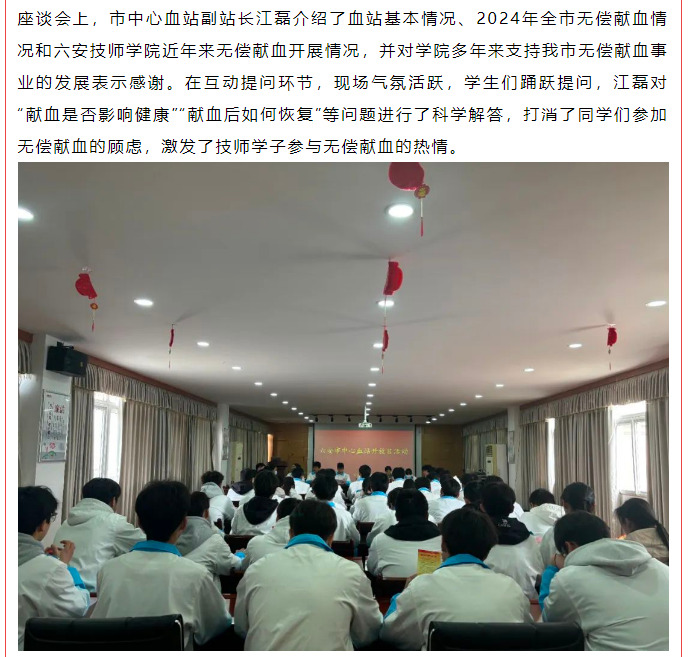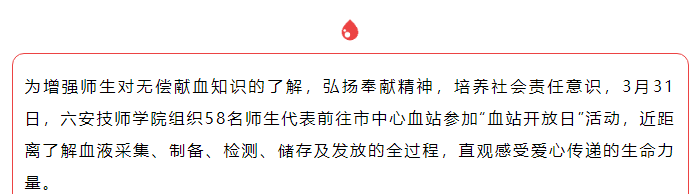六安技师学院师生走进血站探秘“一袋血的旅程”