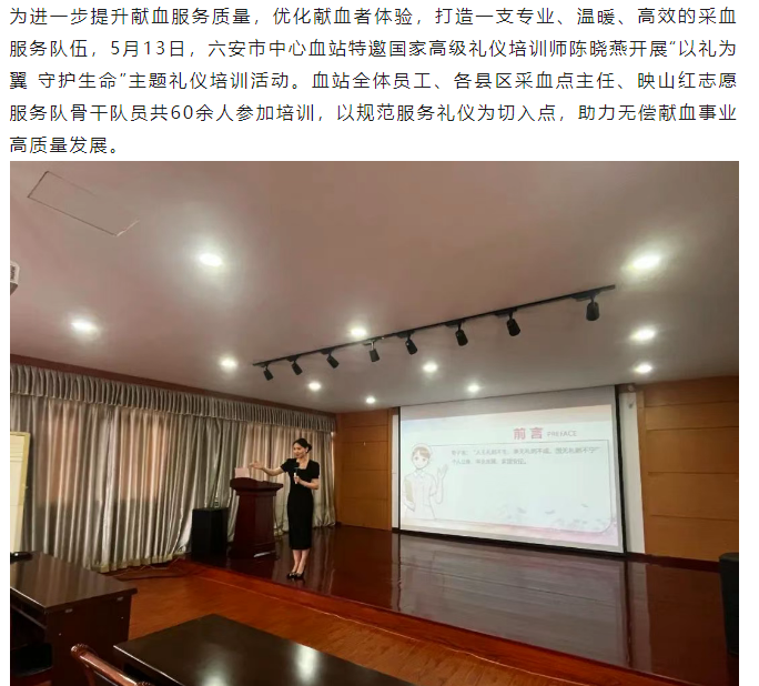 六安市中心血站开展开展“以礼为翼 守护生命”主题礼仪培训