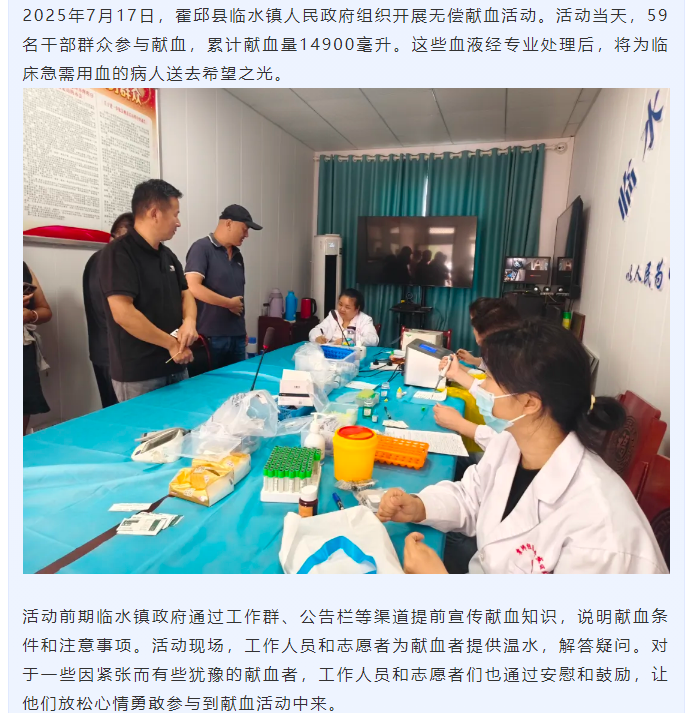 霍邱县临水镇:热血送来希望之光