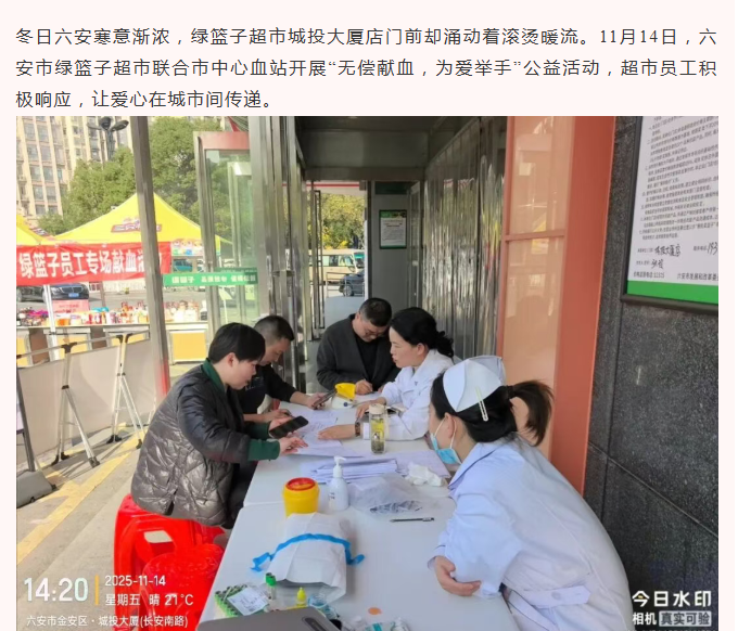 热血暖冬 爱心传递!六安绿篮子超市献血活动点燃城市温情