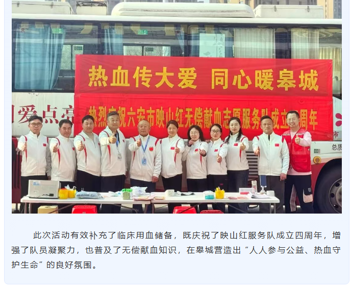 热血传大爱 同心暖皋城!六安映山红无偿献血志愿服务队四周年献血活动圆满开展