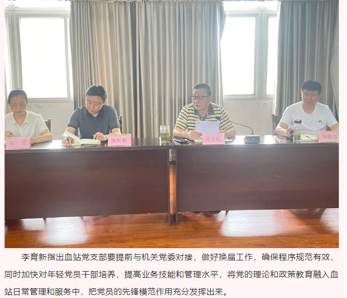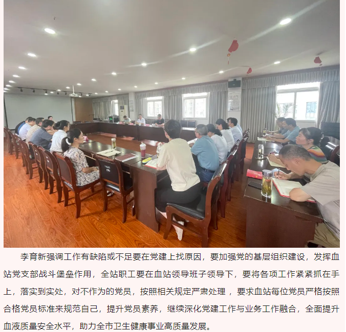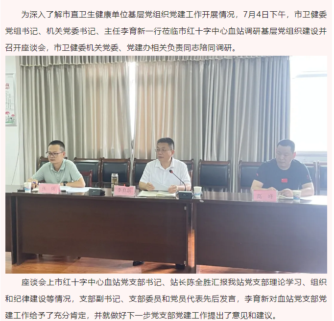 市卫健委党组书记、机关党委书记、主任李育新莅临市红十字中心血站调研党建工作