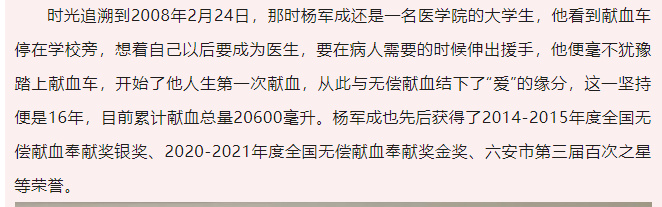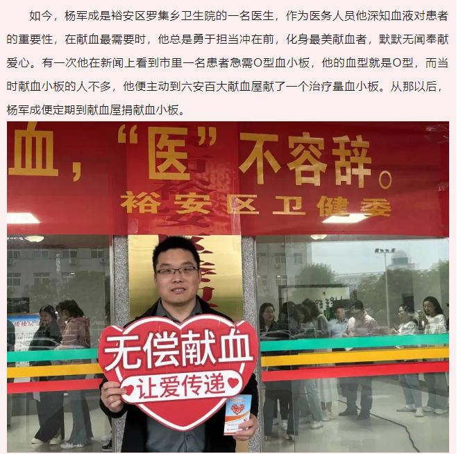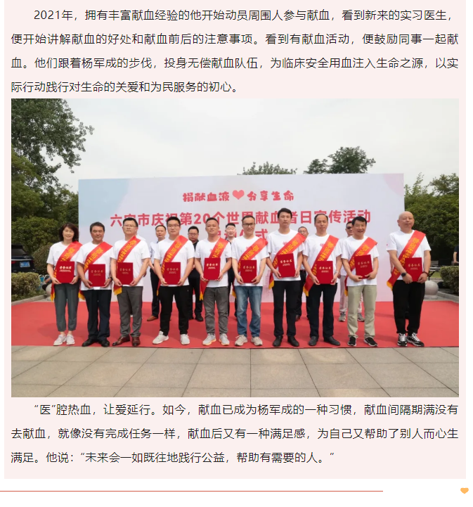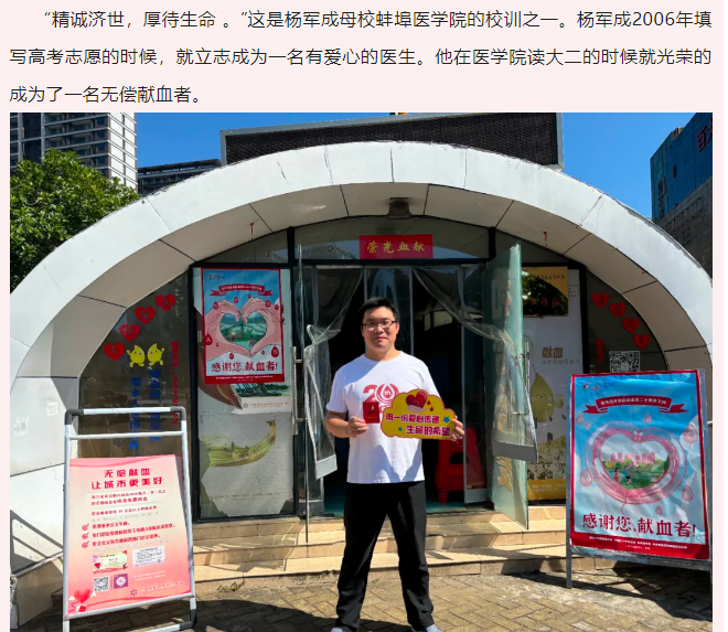 百次献血之星杨军成:“医”腔热血 让爱延行