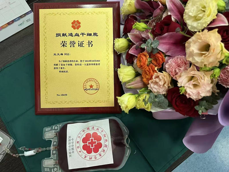 2015年,王文涛光荣的加入了中国造血干细胞捐献者资料库。2024年10月,王文涛接到了广州红十字会的电话,他的HLA配型实验成功与一名血液病患者匹配,接到电话的王文涛立刻动身前往广州,并在10月底成功捐献了造血干细胞。